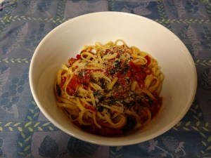 What I came up with is also one of my favorites. And though hubby likes his meat, he also loves this dish: Pasta Pomodoro.