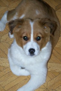 Sadly, we lost Jamie when she was 5, and we brought Angie home as a tiny, scrawny 10-week old puppy who had been found abandoned in a field. After many vet visits, we nurtured her back to health. Tragically, she was hit by a car when she was only one year old. I still miss her. She was one of those happy dogs who think life is just great. Her long bushy tail was always wagging, her big goofy ears always perked, waiting, wondering, ready for whatever was next.